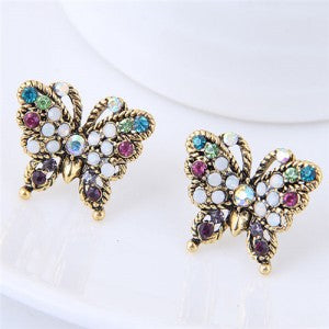 Embellished Vintage Golden Rimmed Butterfly Fashion Stud Earrings - Multicolor